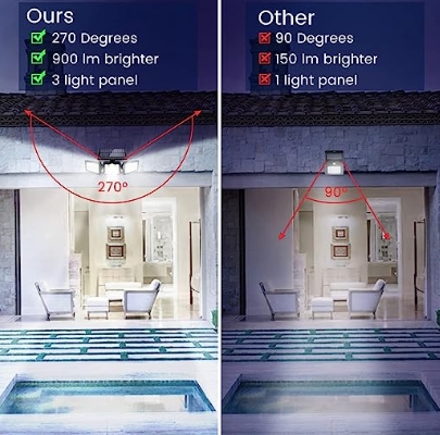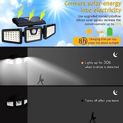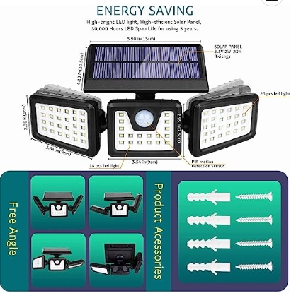 ZKIBW projecteur solaire PIR 3 têtes l'unité
