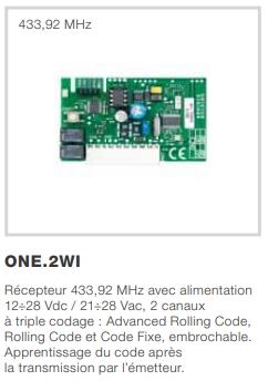 ONE.2WI Recepteur Beninca 2 Fonctions à embrocher