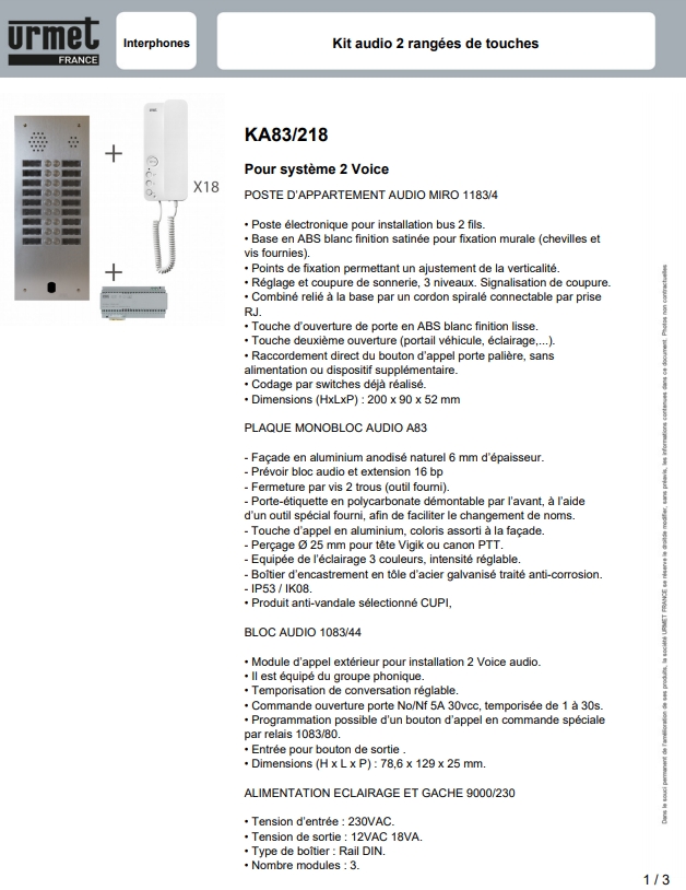 • Programmation possible d’un bouton d’appel en commande spéciale par relais 1083/80.